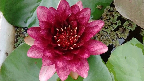 nenufar mediano, de bellas flores fucsia profundo