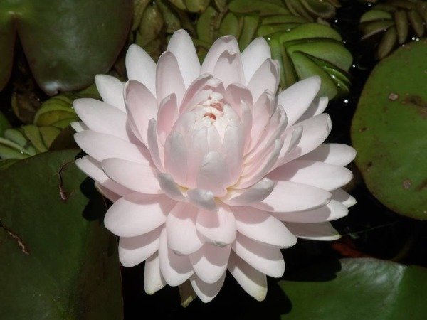 Bello nenufar con flores multipetalas, rosa claro, belleza exquisita
